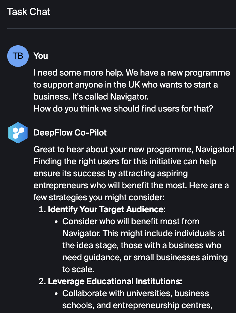 “Navigator will be able to help anyone, anywhere, online. It will offer help and advice on getting things done once it has asked questions to get to know them and their business idea, helping them draw up a plan for what needs to happen and then using AI agents so they have a team of marketers, researchers and copywriters even before they have registered their business.”